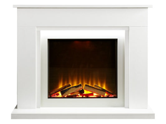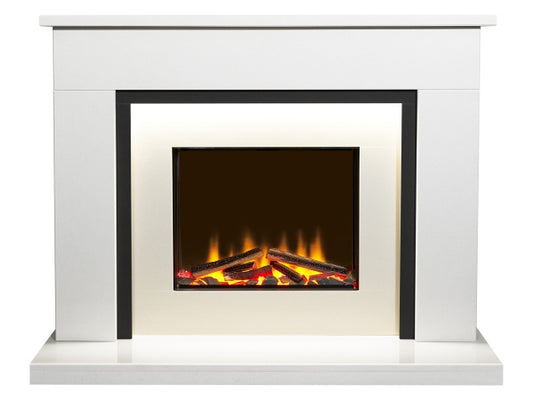 Acantha Maine White Marble Fireplace with Downlights & Alta Electric Inset Stove in Black