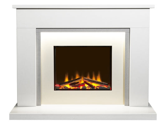 Acantha Milano White & Sparkly Grey Marble Electric Fireplace Suite, 48 Inch